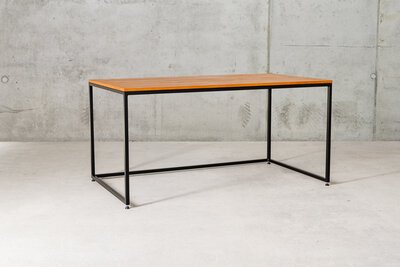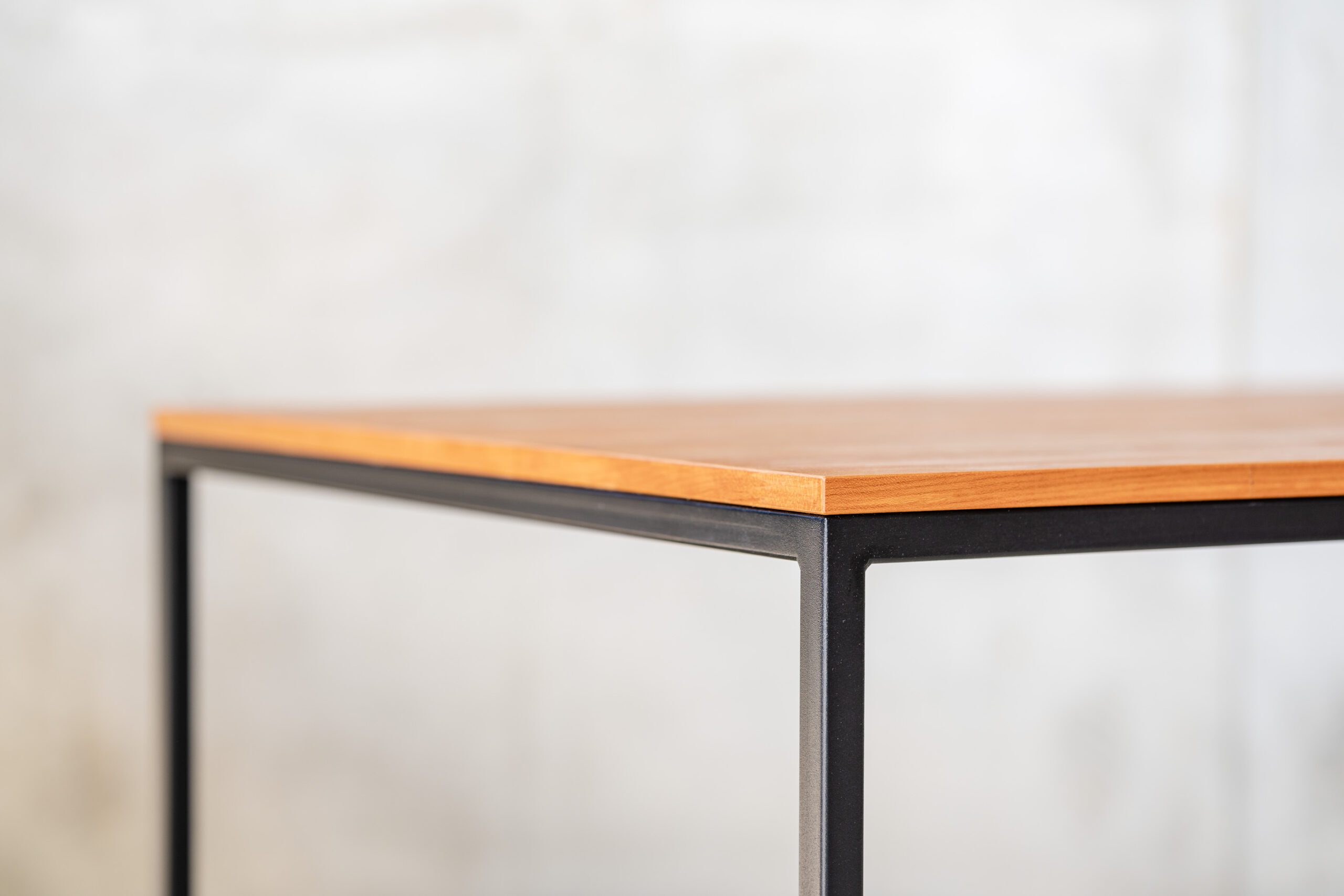 Dieser schlichte Schreibtisch aus pulverbeschichtetem Stahl und einer Holzplatte aus Edelfurnier /Kirsche besticht durch sein schlankes Design. Der Tisch bietet viel Platz zum Arbeiten und fügt sich zeitlos in Ihr vorhandenes Konzept ein. Vielseitig kombinierbar mit unseren anderen Produkten.