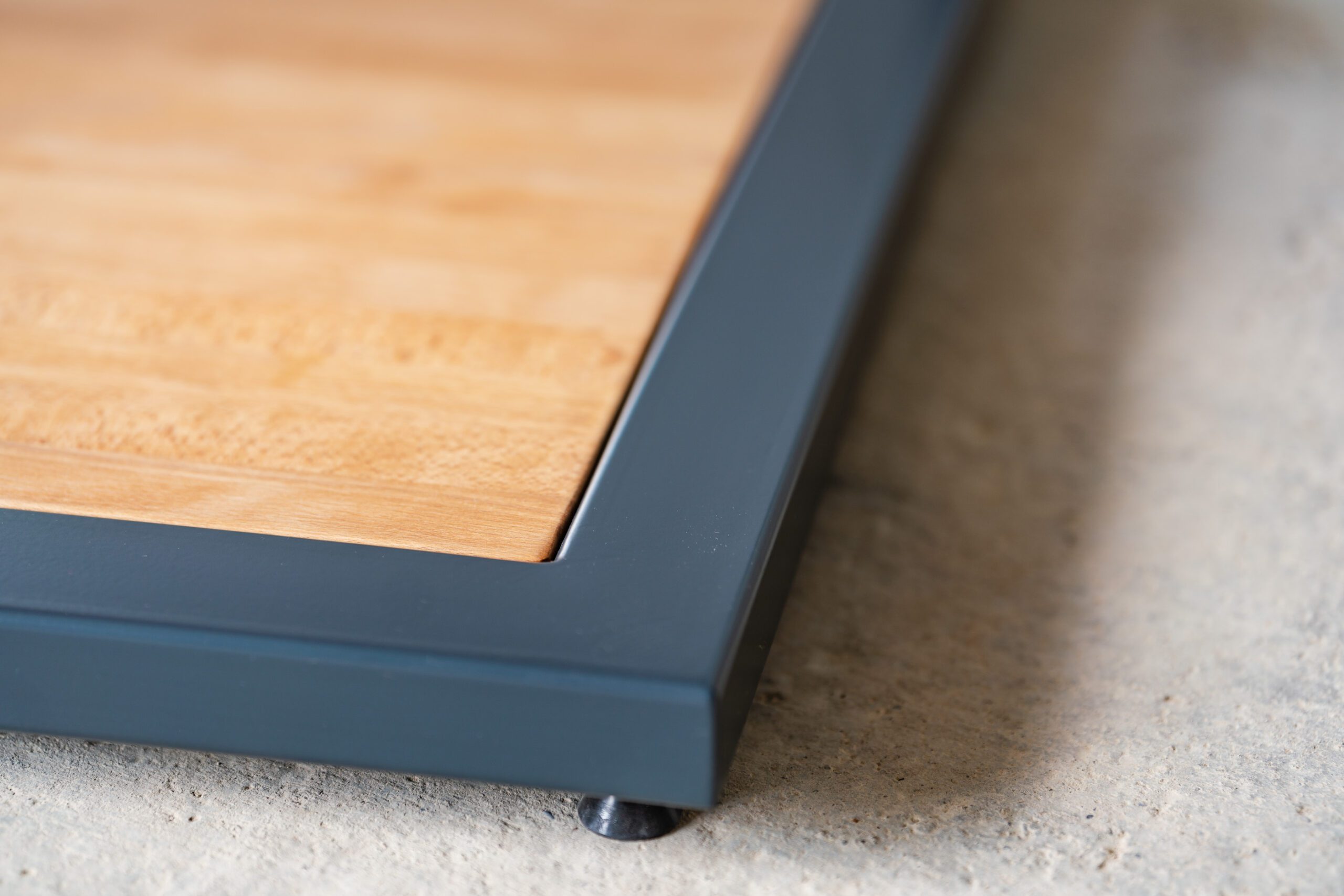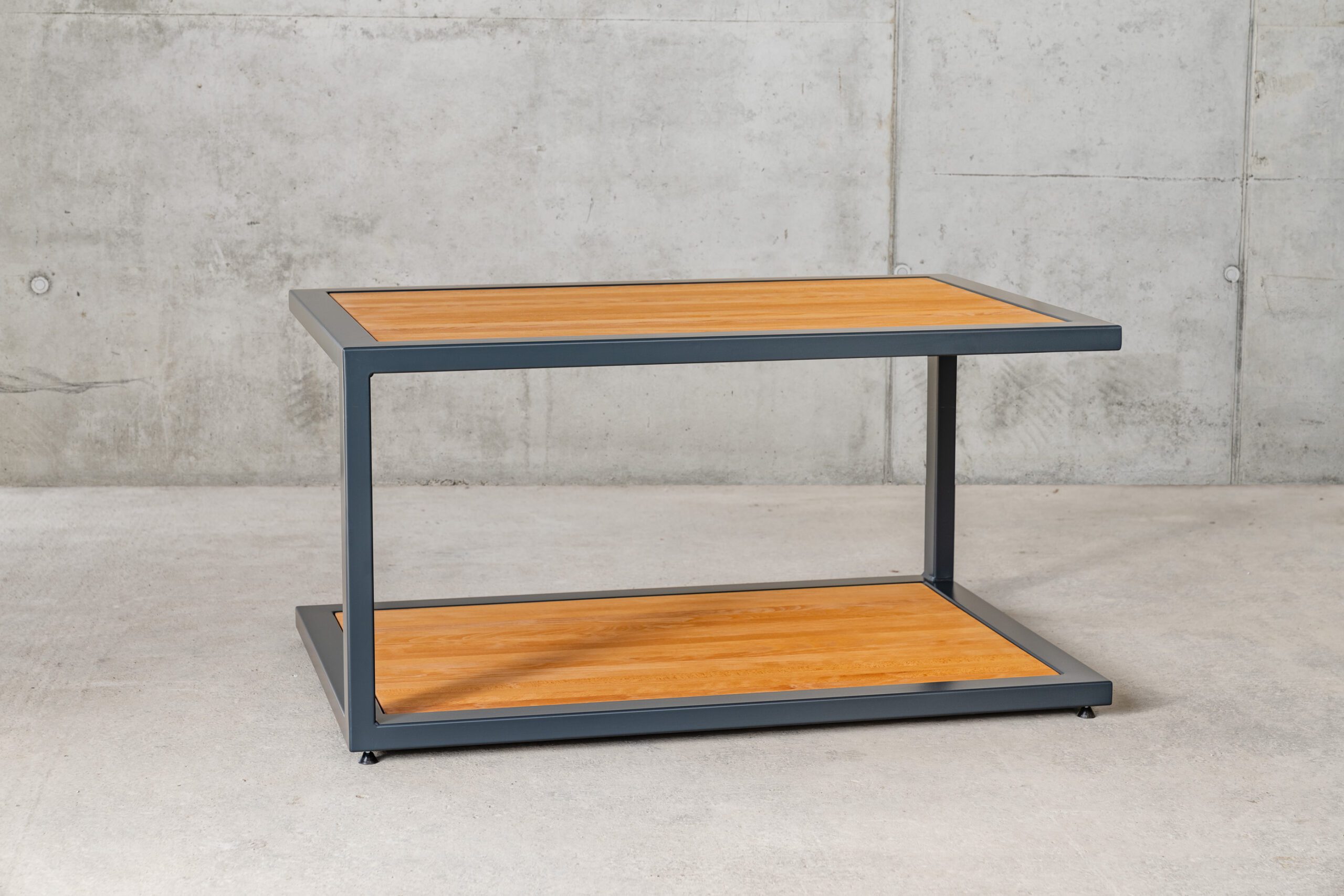 Unser „Blix“ besticht durch Design und die beiden, im Stahlrahmen versenkten, Massivholzplatten mit einer Stärke von 40 mm.