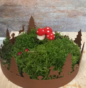 Der Ring kann wunderschön mit Moos oder Dekoelementen  bestückt werden.